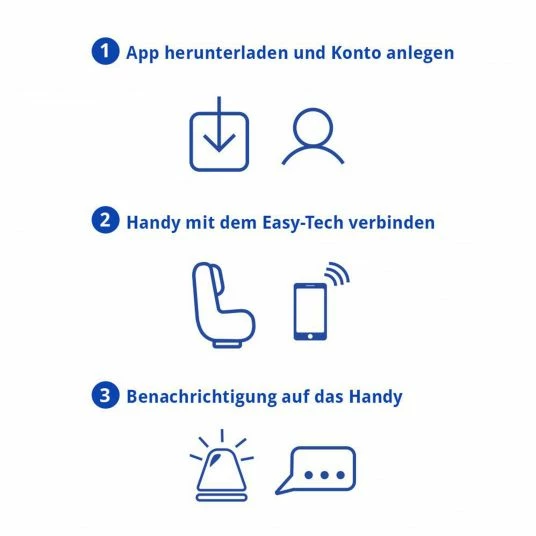 DafΓΌr brauchst Du nur den Easy-Tech, die entsprechende App und ein Smartphone mit Bluetooth. Du kannst den Easy-Tech ganz einfach an jedem Autokindersitz oder Sicherheitsgurt bei Dir im Auto befestigen.