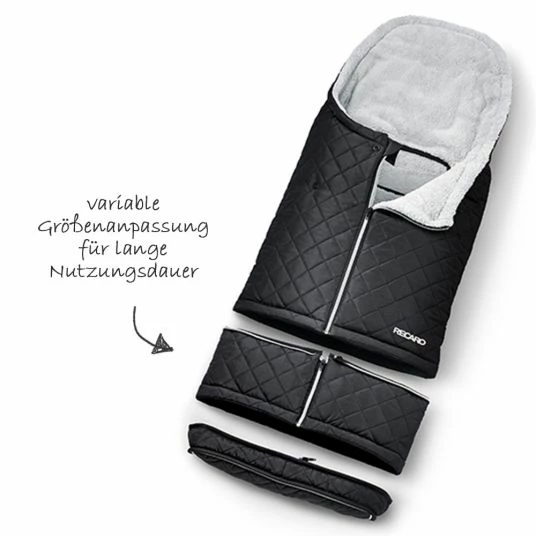 Der Fußsack Vario für Easylife & Citylife – Black Grey von Recaro ist die ideale Ergänzung für den Recaro Citylife und Easylife an ungemütlichen Tagen. Das kuschelweiche, thermoregulierende Innenfutter und die wasser- und windabweisende Oberfläche sorgen dafür, dass Dein Baby im Buggy angenehm weich und geschützt liegt. Die Kapuze lässt sich mit der integrierten Kordel zusätzlich zur Mumienform zusammenziehen.