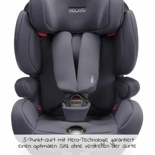 Ab einem Alter von ca. 9 Monaten bis 4 Jahre (9- 18 kg) Gr. 1 wird Dein Kleines mit einem weich gepolstertenΒ 5-Punkt-GurtΒ angeschnallt. Das Besondere dabei: Das einzigartige HERO-Sicherheitssystem verbindet Schulterpolster, Schultergurte und die KopfstΓΌtze zu einer Einheit und verhindert so, das Verdrehen und Verrutschen der Gurte Ist dein Kind Γ€lter, ab ca. 4 Jahre (ab 18 kg) Gr. 2/3, kommt ausschlieΓlich der fahrzeugeigene Gurt zum Einsatz. Rot markierte FΓΌhrungen am Kindersitz helfen beim korrekten Anschnallen und tragen so wesentlich zur Sicherheit bei. Wird der 5-Punkt-Gurt nicht mehr benΓΆtigt, lΓ€sst er sich in der integrierten Gurtaufbewahrung verstauen. Ein Ausbau ist nicht notwendig. Β Β