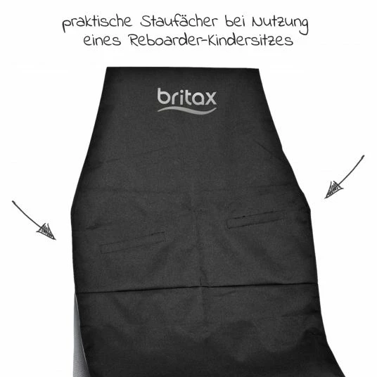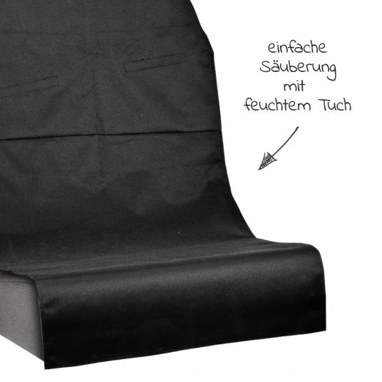 Kleine matschige oder nasse Schühchen können auch der Rückenlehne nichts anhaben, diese wird ebenfalls vom großzügig geschnittenen Rücksitzschoner abgedeckt. Wird der Schutz einmal schmutzig, lässt er sich ganz einfach mit einem feuchten Tuch abwischen. Praktische Fächer auf Höhe der Rückenlehne bieten Dir, bei Nutzung mit einem Reboarder, jede Menge Platz für Zubehör für unterwegs.