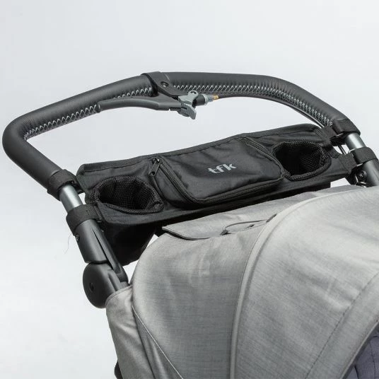 The bottle always ready to hand: The Cupholder for the TFK models Joggster and DOT has two practical recesses for babies drinking bottle and Mamas coffee cup. So you have little things like keys, bags or change you can put in the middle compartment. Thanks to the Velcro, the attachment is very easy.