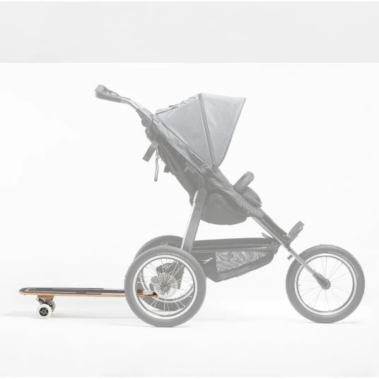 Mit dem Mamaboard kommen Sie mit Ihrem Mono, Joggster oder Twin noch bequemer vorwärts. Einfach mit einem Bein draufstellen, mit dem anderen abstoßen – und los geht’s. Bei leichtem Gefälle können Sie sich komplett draufstellen und einfach mitfahren.