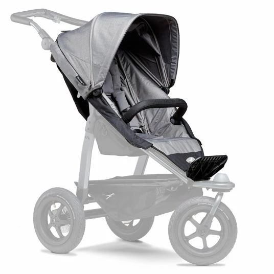 Der XXL-Komfortsitz fĂŒr den Kombi-Kinderwagen Mono – Grau ermöglicht die Nutzung Deines Kinderwagens Mono ĂŒber das Kleinkindalter hinaus. Auch Kinder im Kindergartenalter werden bei Wanderungen und lĂ€ngeren Aufenthalten im Freien irgendwann mĂŒde. Im Sportsitz können sie sich zwischendurch ausruhen – oder auch einfach mal die Augen zumachen. Die RĂŒckenlehne des Sportsitzes ist stufenlos bis in die Liegeposition verstellbar um ihn optimal den BedĂŒrfnissen Deines Kindes anpassen zu können. Hier findet Dein Kind im Alter von mind. 6 Monaten bis ca. 4 Jahre (Gesamtbelastung von 34 kg)  bequem Platz. ZusĂ€tzlich ist der Wagen mit einem erweiterbaren FuĂbrett ausgestattet. So kann Dein Kleines in jedem Alter bequem die FĂŒĂe hochlegen. Sicherheit muss dabei sein: Deshalb ist die Sitzeinheit nicht nur mit einem Kopfpolster sondern auch mit einem gut gepolstertem 5-Punkt-Gurtsystem ausgestattet. AuĂerdem hat sie einen gepolsterten SchutzbĂŒgel, der sich fĂŒr den leichten Ein- und Ausstieg öffnen lĂ€sst.  FĂŒr Schatten im Inneren sorgt das groĂe, ausziehbare Verdeck. Ein in die RĂŒckseite des Sitzes integrierter Regenschutz kommt bei Bedarf zum Einsatz.