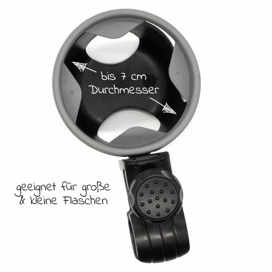 Geeignet ist der praktische Helfer fĂŒr kleine und groĂe Flaschen mit einem Durchmesser von maximal 7 cm. Klappst Du den Kinderwagen zusammen, muss die Haltung nicht abgenommen werden. Sie besteht aus langlebigem, robustem Kunststoff und kann zur Reinigung mit einem feuchten Tuch abgewischt werden.