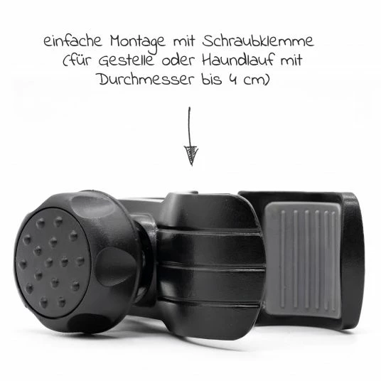 - sehr einfache Montage an fast jedem Kinderwagen mit einer Schraubklemme
