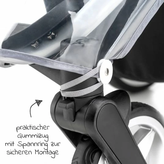 With the Deluxe Universal Rain Cover from Zamboo, you can reliably protect your child from the rain while walking. The transparent rain cover fits joggers, buggies and sports cars with convertible top. The window on the front can be opened so that your child can look out unhindered and get more fresh air. The window on the front can also be opened again with the help of different Velcro fasteners. In addition, you can easily reach your child in this way, for example to give him a bottle. In rain and wind, the window is closed with Velcro. Thanks to the transparent film, your child can still see his environment and you always have a clear view of your child. The film complies with standard EN 71 and does not contain any plasticizers hazardous to health.