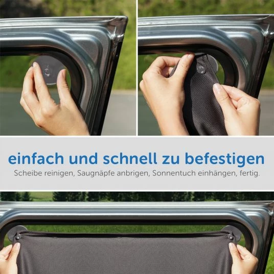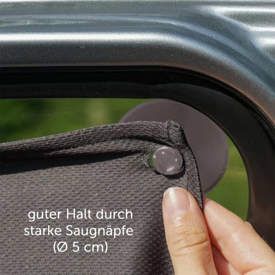 EASY MOUNTING: Press the five suction pads onto the windshield, pull the cloth in – and your little one is protected. Super: The suction cups are made in baby-friendly sizes.