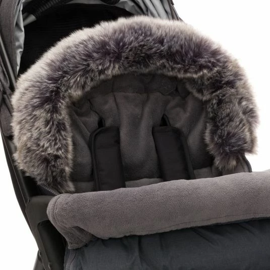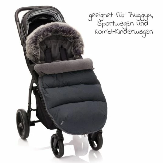 1 Zamboo Universal Thermo-Flecce Fußsack mit Kunstfellkragen für Kinderwagen & Buggy in Melange Dunkelgrau