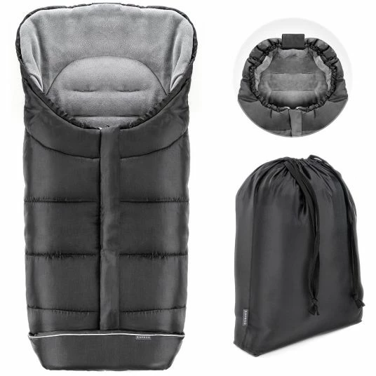 PRACTICAL FEATURES: To keep the head warm, the headrest can be pulled together to form a hood. The extra protection in the foot area keeps dirt away. The winter bag is machine washable at 40Β°C. Practical: In the supplied transport bag you can store the footmuff space-saving in the pram basket.
