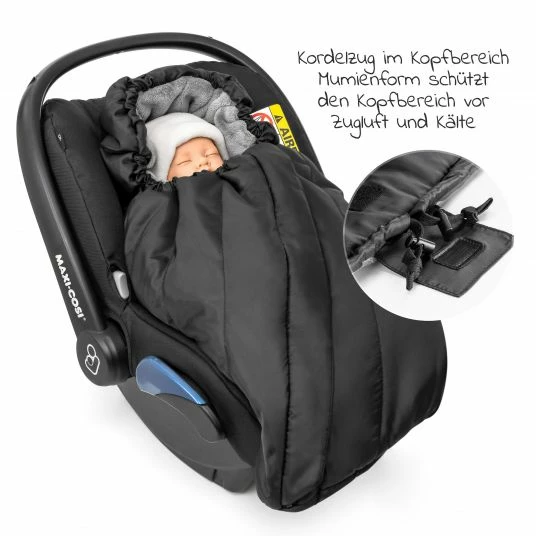 Soft teddy fleece inside and water-repellent polyester make the thermal foot bag the ideal accessory for your car seat. You can open the front completely with a zipper. So you packed your little one quickly. Super: The zipper leaves diagonally so as not to stumble on the face. You pull the headboard together with a cord to a hood. So your baby’s kitten is ideally protected. Perfect for the way to the car or walks in the Shop-n-Drive system.
